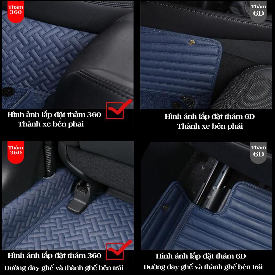 Một điểm khác biệt của thảm lót sàn ô tô 360 so với các dòng thảm khác trên thị trường đó chính là thảm sàn 360 được lắp một cách cố định vào các mép của thành xe. Phủ kín toàn bộ sàn xe đem lại cho không gian xe một phong cách sang trọng và mới lạ.