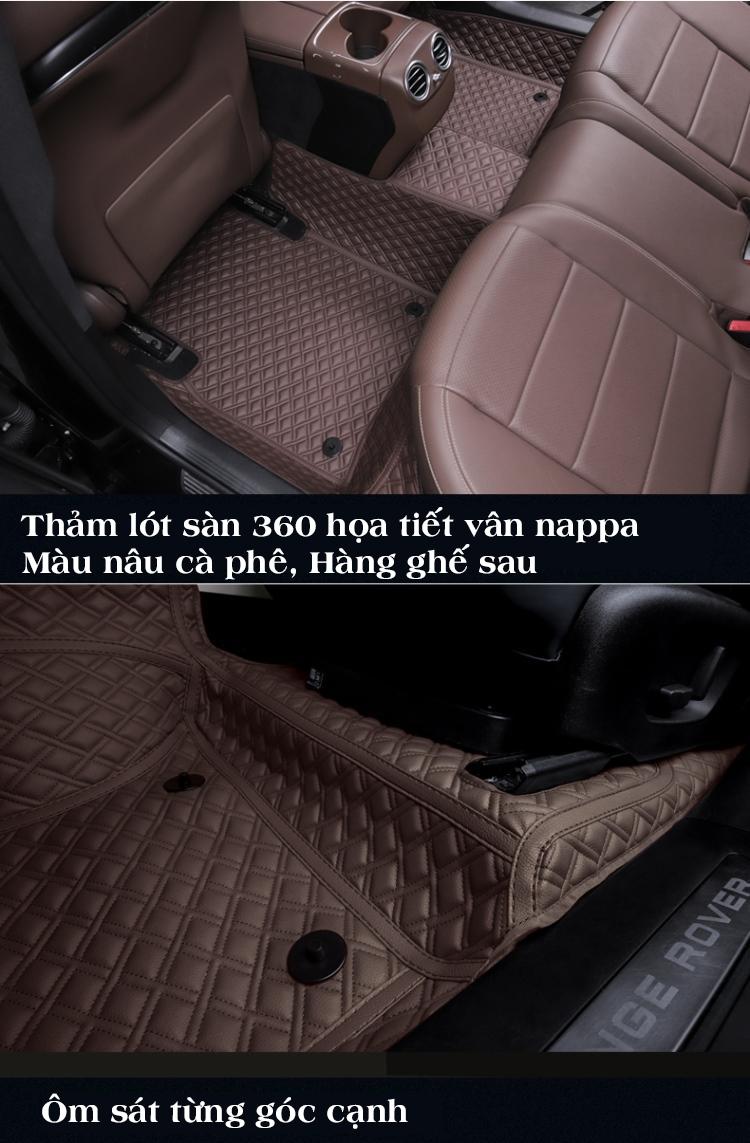 Với tiêu chí khắc phục những nhược điểm của sàn nỉ và đem lại sự tiện nghi, hiện đại cho xe cũng như người sử dụng. Thảm lót sàn 360 được thiết kế với nhiều mẫu chất liệu da, đa dạng về màu sắc lẫn họa tiết đem lại phong cách khác nhau cho cho chủ xe lựa chọn.